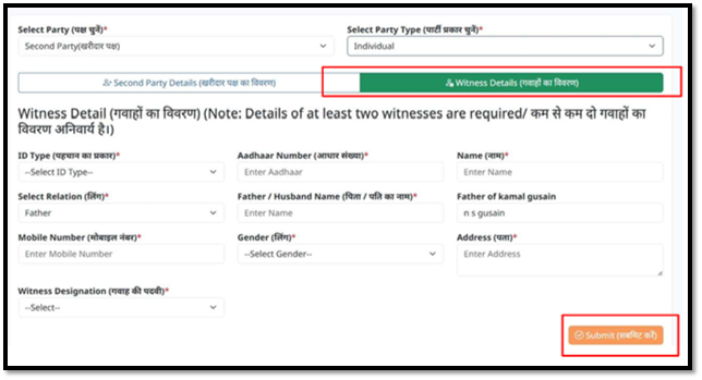 Step 11: Click the ‘Witness’ option and fill up the necessary details. Add at least 2 witnesses to proceed further.